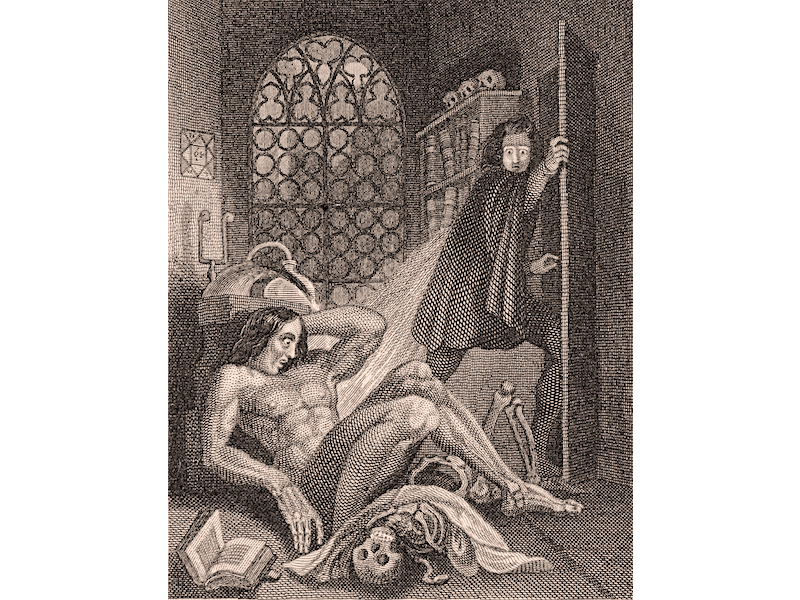 Quando Mary Shelley fa dire al dottor Frankenstein “la vita e la morte mi apparivano come limiti ideali che avrei infranto, per poi riversare un fiume di luce nel nostro mondo di tenebre”, sta trasformando le scoperte scientifiche del proprio tempo, e la loro narrazione, in letteratura. In Frankenstein – Il mito tra scienza e immaginario (Carocci, 2019), lo storico Marco Ciardi e l’esperto di fumetti Pier Luigi Gaspa ricostruiscono la genesi dell’opera e la sua sterminata eredità sottolineando tutte le influenze e le suggestioni a disposizione di Mary Shelley nel momento in cui scriveva, sia nell’edizione originale del 1818 sia in quella da lei rimaneggiata nel 1831. Certamente, c’erano gli esperimenti con l’elettricità sui cadaveri, ma c’era anche molto altro, per esempio la complicata transizione tra il sapere magico degli alchimisti a quello proprio della scienza sperimentale, senza contare che l’autrice faceva parte, assieme al marito Percy Bysshe Shelley, di un ambiente letterario che da tempo ragionava su questi argomenti. Per questo forse non ha molto senso, ed è limitante, andare alla ricerca dell’uomo che ha ispirato il romanzo.