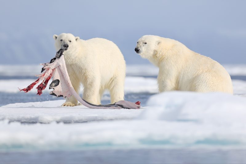 I fiordi delle Svalbard sono anfratti vitali per gli orsi polari: il ghiaccio marino è un porto sicuro e un luogo di riposo per la loro preda più importante, la foca dagli anelli. Il lungo collo e la velocità dell’orso lo rendono adatto a pescare le foche nei buchi del ghiaccio o a bloccarle mentre nuotano. Delle otto specie di orso presenti sulla Terra, l’orso polare è il più carnivoro ed è quindi ovvia la scarsa prospettiva che ha di sopravvivere in un Artico senza ghiaccio – prospettiva, questa, molto probabile per la fine del XXI secolo. In assenza di ghiaccio, infatti, gli orsi perdono una piattaforma vitale per gli spostamenti e l’accesso alla loro principale fonte di cibo.