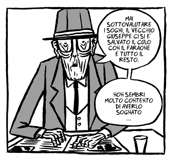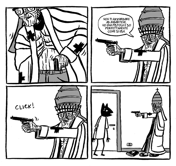 Alla fine del testo sono indicate le singole interviste da cui sono state tratte le domande/risposte qui assemblate. Si ringrazia Il Saggiatore che ha concesso di attingere a piene mani da questo volume-miniera (a cui rimando naturalmente tutti i lettori desiderosi di approfondire) e il disegnatore Simone Angelini che ha gentilmente prestato alcune sue splendide immagini dello scrittore pistolero, tratte (quasi tutte) dal molto burroughsiano fumetto Anubi, realizzato insieme a Marco Taddei e ripubblicato di recente per l’editore Coconino press.