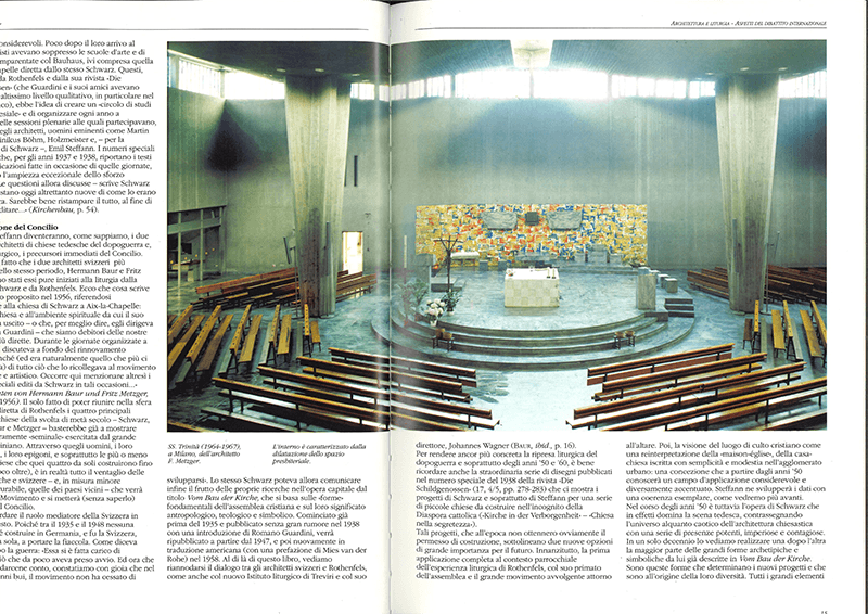 Archias è lo pseudonimo di Gio Ponti, che nel libro sostiene che non si tratta di fare aderire l’edificio allo stile di un’epoca, ma piuttosto all’espressione di fede che ogni epoca accentua. Gio Ponti insisteva poi sul fatto che i cattolici facessero arte alta, non tanto un’arte cattolica in sé e per sé.