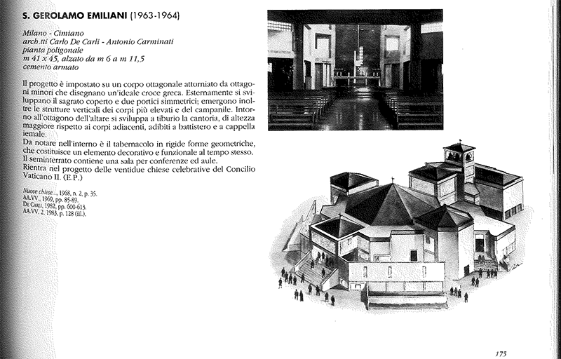 Tra le prime pagine del libro, prima ancora di entrare nel vivo dell’argomento e delle architetture compiute, incontriamo la foto di una “chiesa provvisoria”, immersa nel proverbiale grigiore della periferia milanese.