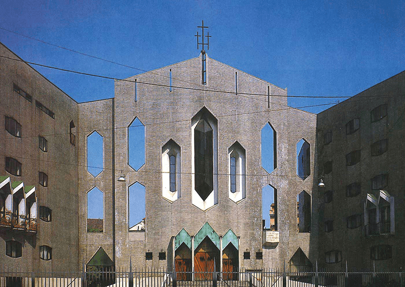 San Gerolamo Emiliani, zona Cimiano, 1964. Progetto di Carlo De Carli, architetto e designer, cresciuto nello studio di Gio Ponti, di cui fu in seguito assistente al Politecnico.