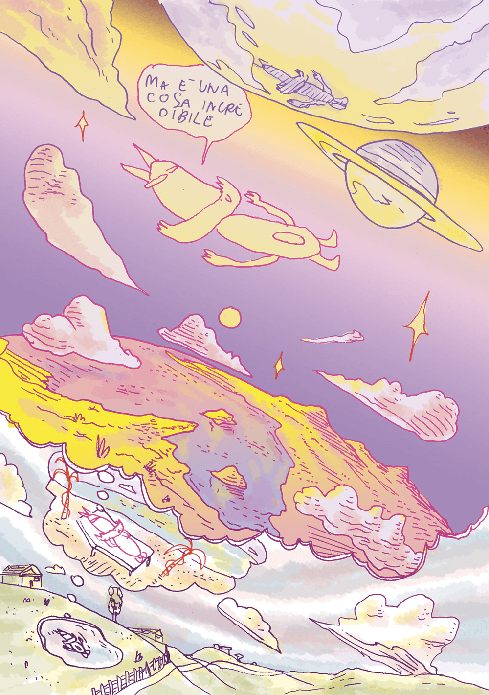 La quarta di copertina lo definisce “un’avventura al contrario”, niente di più preciso per prepararsi a una de-escalation dove si parte letteralmente dal “Mondo dello Stress”, si supera il regno di Lavoro, Tensione & Sopravvivenza per poi ascendere ai livelli superiori quali Riposo, Relax, Fare Cose a Caso, fino allo zenit oltremondano che sfonda le quattro dimensioni, il Super Relax Ultra HD 1080. “Ascendere” forse non è il verbo più indicato, 1) perché l’avventura del Dr. Pira è multidimensionale, 2) perché rivolgere lo sguardo dentro di noi è sprofondare. Non è un caso se il libro inizia con un tuffo del suo protagonista, Gatto Silvestre: