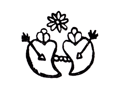 In allegato al testo troviamo le riproduzioni dei cliché in legno utilizzati per i tatuaggi e tra i soggetti ne troviamo una serie che l’autrice definisce “amorosi”, per differenziarli da quelli sacri, e ce ne parla in questo tono per farli comunque rientrare in qualche modo in quella forma di sacralità da lei attribuita al tatuaggio della Santa Casa di Loreto: