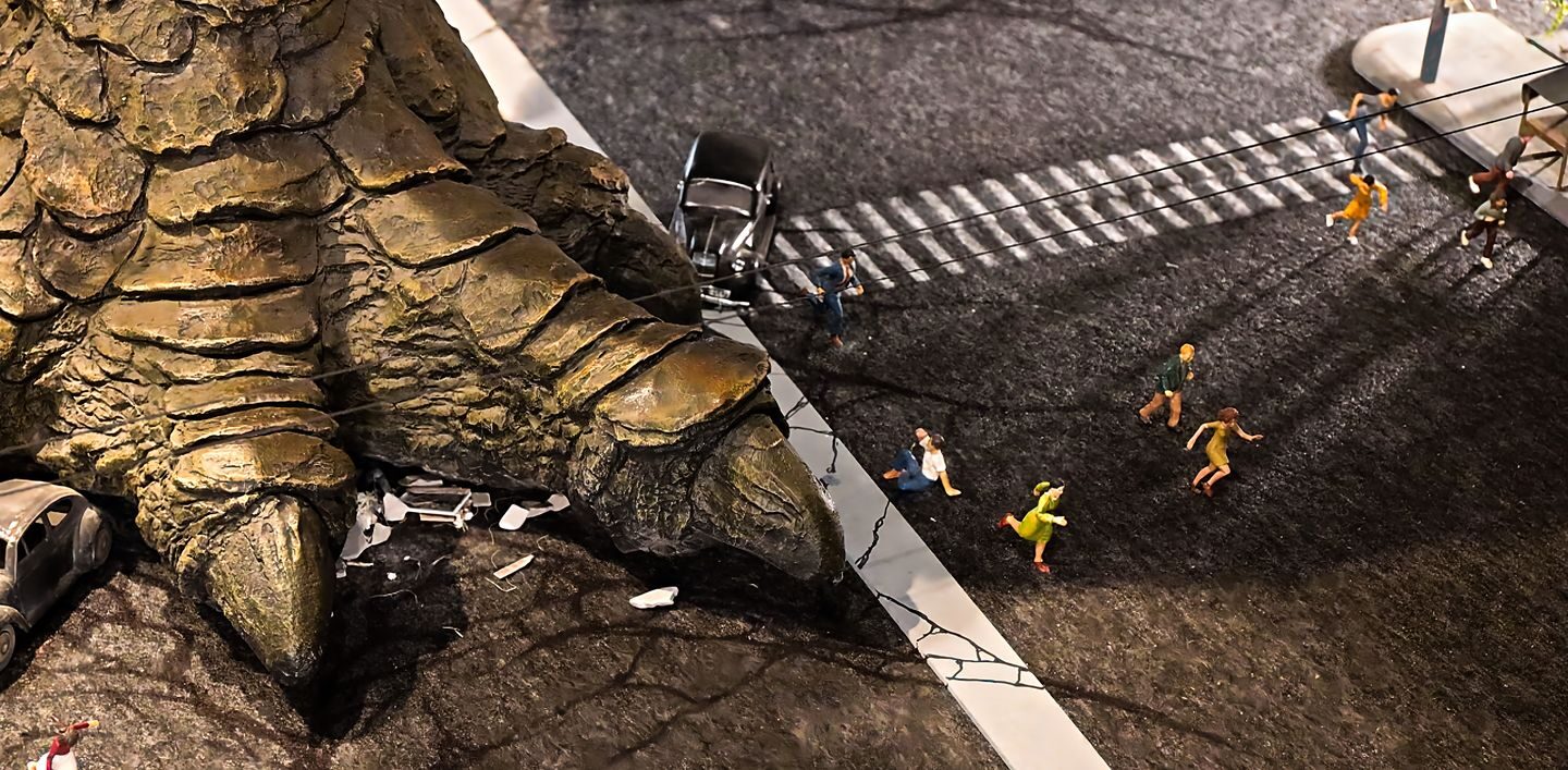 N el Godzilla originale, il capolavoro di Ishirō Honda datato 1954, il noto lucertolone era alto 50 metri e pesante 20.000 tonnellate. Le sue misure hanno continuato a crescere negli anni fino alle sue iterazioni più recenti, quando ha superato le 80.000 tonnellate (nelle versioni hollywoodiane) e i 300 metri d’altezza (nel giapponese Godzilla: Planet of the Monsters, 2017). Nel King Kong del 1933, l’arcinoto scimmione era alto 15 metri e pesava intorno alle 20 tonnellate; oggi, in Godzilla vs. Kong (2021) e Godzilla e Kong – Il nuovo impero (2024), arriva a superare i 100 metri di altezza e a toccare un peso di 90.000 tonnellate. Ancora: lo squalo dell’omonimo film di Spielberg del 1975 è lungo una volta e mezzo un vero squalo bianco; l’anaconda di Anaconda tocca i 15 metri, più del doppio di quanto sia davvero lungo questo serpente; le formiche di Assalto alla Terra (1954) sono grosse come cani. E per amor di sintesi mi sto limitando ai film: dovessi allargare il discorso a fumetti, videogiochi, romanzi, ma anche a miti, leggende, fiabe e favole, il pezzo raggiungerebbe proporzioni paragonabili a ciò di cui parla. Incrociando questi dati, comunque, si giunge a una conclusione difficilmente contestabile: ci piacciono le creature gigantesche (anche note nell’ambiente come mostri grossi), e più in generale tutto ciò che ha dimensioni ciclopiche.